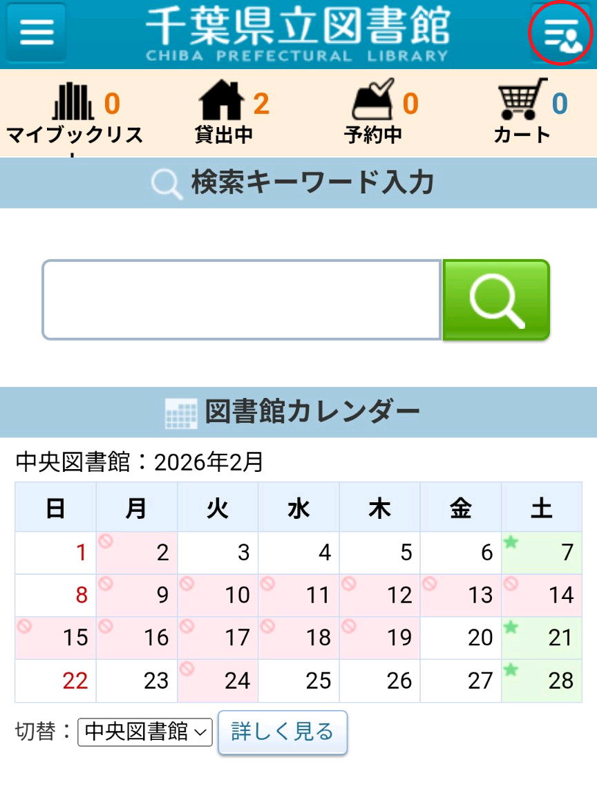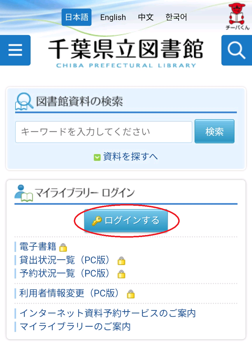 千葉県立図書館ホームページからマイライブラリーにログインする図